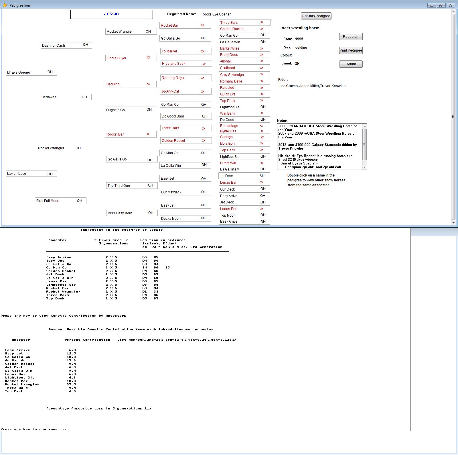 Below is the pedigree of Jessie the 2007/2009 Steer Wrestling Horse of the Year.